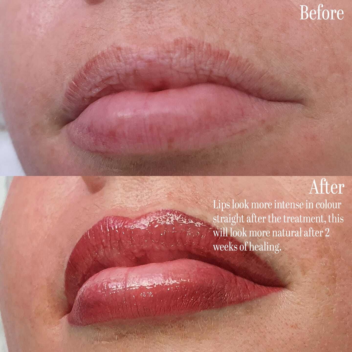 The healing process for lip blush treatment typically takes about 1 to 2 weeks. Initially, you may experience mild swelling, tenderness, and a more intense colour than the final result. Over the healing period, the colour will settle, and any initial discomfort will subside, revealing a beautifully enhanced, natural-looking lip colour.