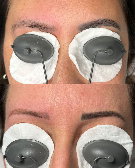 The process is remarkably swift, typically requiring 1-3 sessions, 6-8 weeks apart. Many clients require only one session, however, the number may vary depending on the saturation of existing pigment and the number of previous applications. Once the pigment is removed, the client can have Microblading/semi-permanent brows anywhere from 6-8 weeks later. Generally, the removal of permanent makeup is significantly faster than that of body tattoos.